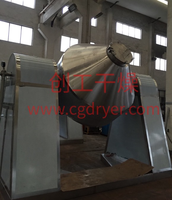 2019年10月初,國內某制藥企業定制的2臺雙錐回轉真空干燥機制作完畢,待發貨。